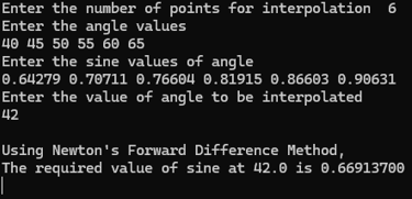 printf("\nUsing Newton's Forward Difference Method,\n");